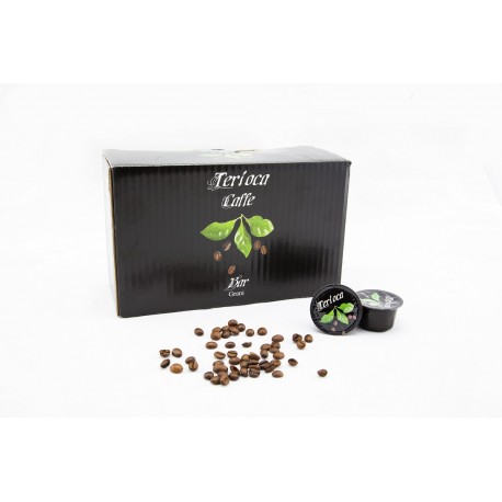 Кафе капсула Terioca черна- специално подбрано средно изпечено кафе. Ще се влюбите в това удоволствие от вкусове и аромати, подбрани в чаша еспресо. Чиста 100% арабика за меко и деликатно кафе, характеризиращо се със силен аромат и вкус. Съвместими със системата Lavazza Blue. Опаковката съдържа 50 бр. Капсули